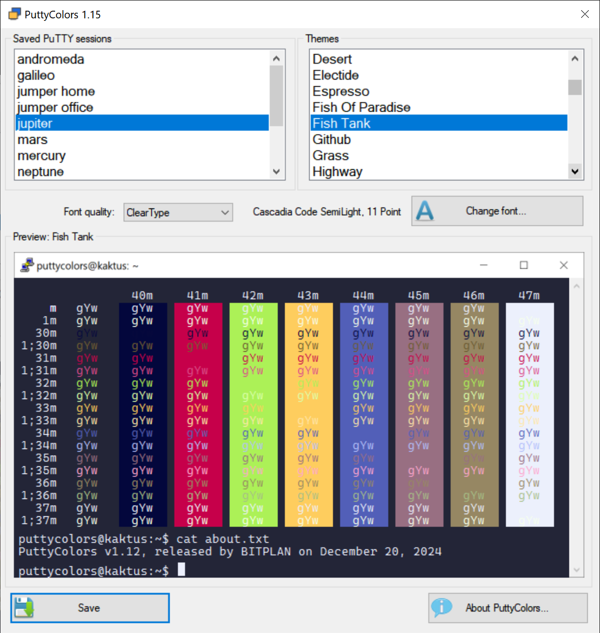 PuttyColors requires the PuTTY program for proper operation. It seamlessly integrates with PuTTY, capable of reading and saving PuTTY session settings.